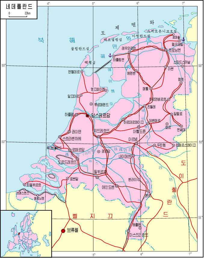 On the second map of Korea, the political map, in the lower right-hand corner, part of Japan is painted in the same dark grey colour. This is a deliberate choice, as it clearly differs from the colour chosen for China and Russia on the same map.