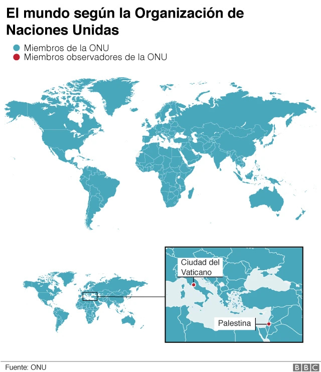 As shown on the map above, in addition to the 193 full members, the UN also has two observers, Palestine and Vatican City, bringing the number to 195 countries. If you look closely, you will also see on the map that Western Sahara and Kosovo are shown in grey. Neither is a member of the UN, despite having attempted to join the organisation, so we can raise the number to 197 countries.