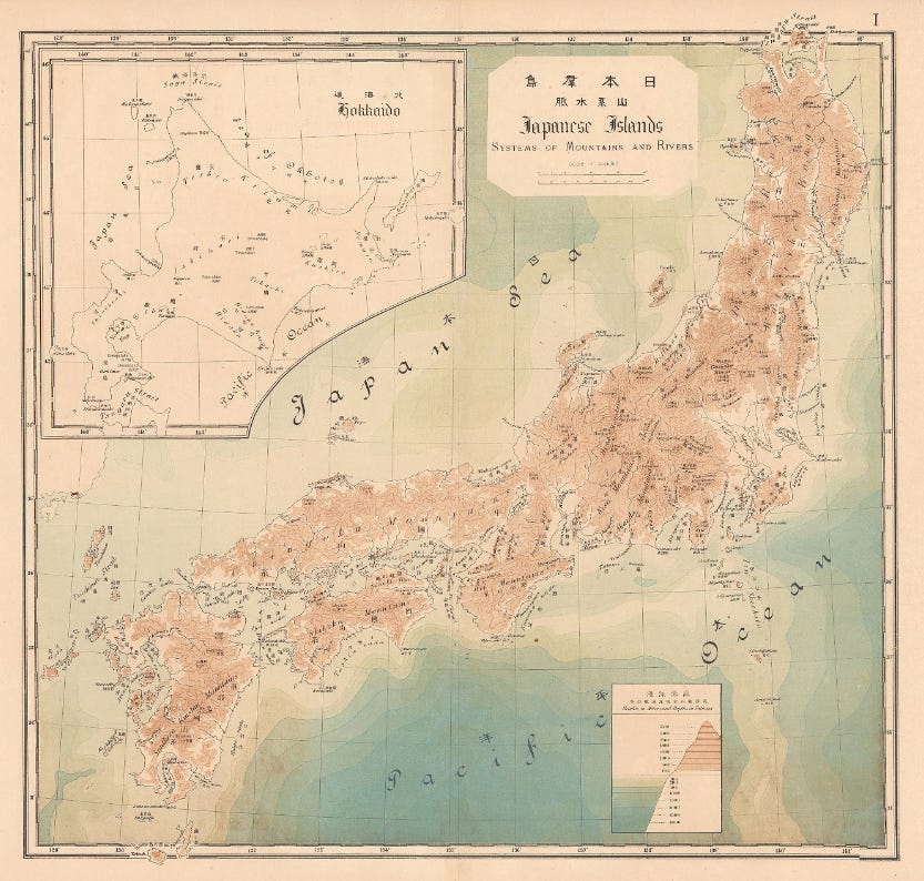 In the same lines, other more elaborate works soon appeared, which were necessary for studying specific subjects within the Japanese context. In 1885, Japan’s first thematic atlas, Agricultural Production of the Empire of Japan2, was published. Although its primary purpose was to provide data on Japan’s agricultural system, it offered a high level of detail on the country’s geography and geology. This atlas, like much of the material produced during this period, was written in both English and Japanese so that it could be used to exchange information and continue to receive material from other countries.